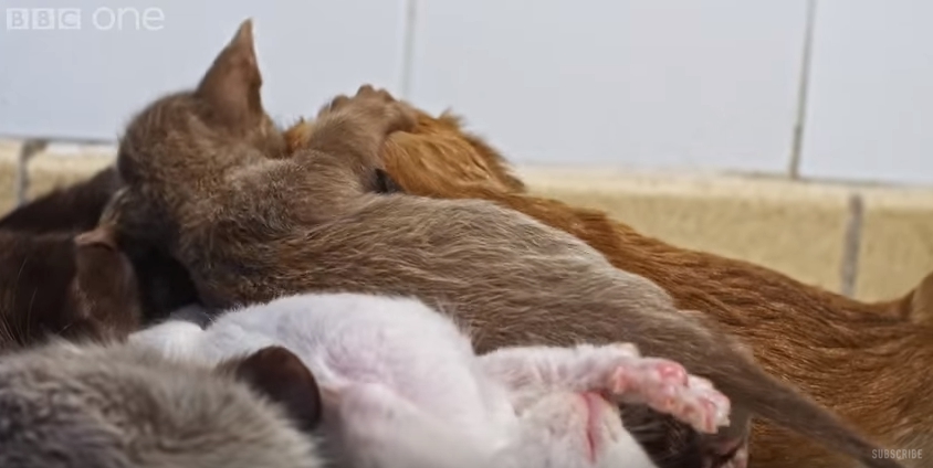 Y hablando de diferencias, los gatos recién nacidos tienen un método particular para alimentarse en orden. Pero este cachorrito solo sabe alimentarse como dicta su instinto y ha tenido algunos altercados con sus hermanos.