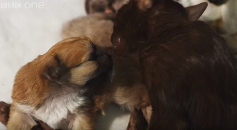 Esta gata dio a luz a sus pequeños felinos el mismo día que nació este cachorro. Él estaba huérfano y sucedió algo inesperado pero grandioso.